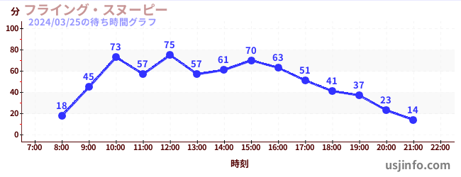 • フライング・スヌーピー$B$N(B2024年03月25日の待ち時間