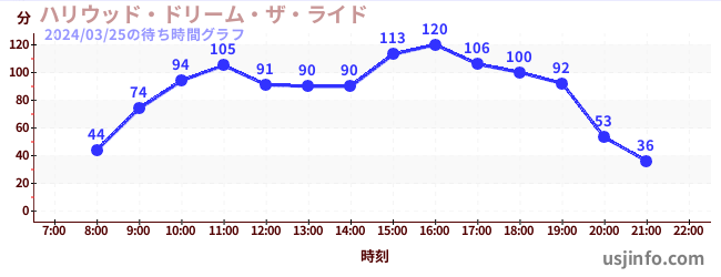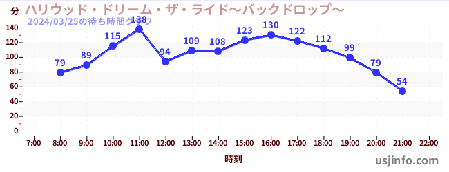 • ハリウッド・ドリーム・ザ・ライド〜バックドロップ〜$B$N(B2024年03月25日の待ち時間