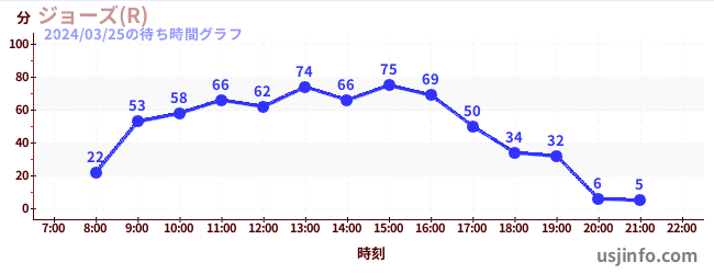 • ジョーズ(R)$B$N(B2024年03月25日の待ち時間