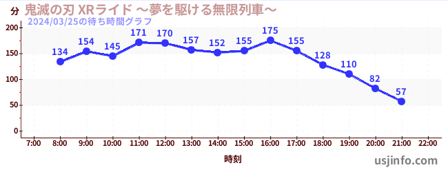 • 鬼滅の刃 XRライド$B$N(B2024年03月25日の待ち時間