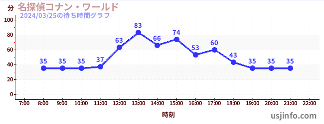 • 名探偵コナン・ワールド$B$N(B2024年03月25日の待ち時間