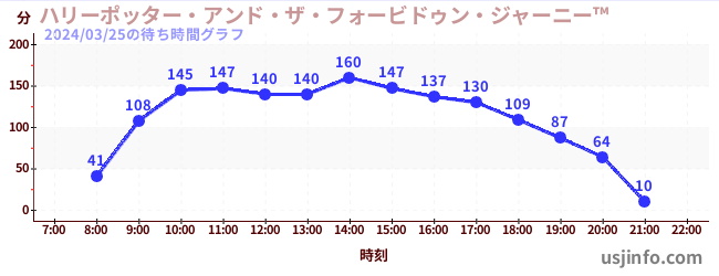 • ハリーポッター・アンド・ザ・フォービドゥン・ジャーニー™$B$N(B2024年03月25日の待ち時間