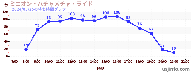 • ミニオン・ハチャメチャ・ライド$B$N(B2024年03月25日の待ち時間