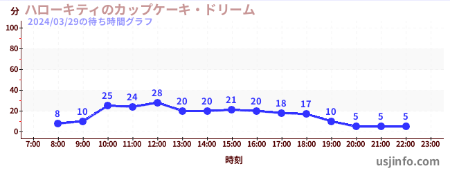 • ハローキティのカップケーキ・ドリーム$B$N(B2024年03月29日の待ち時間