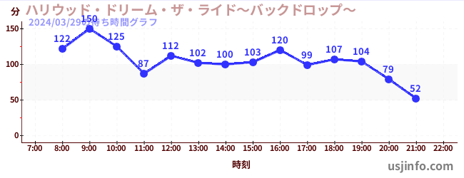 • ハリウッド・ドリーム・ザ・ライド〜バックドロップ〜$B$N(B2024年03月29日の待ち時間