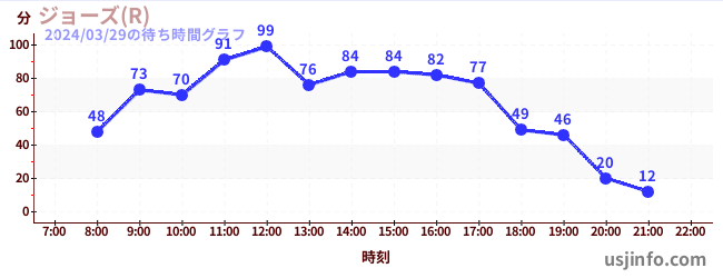 • ジョーズ(R)$B$N(B2024年03月29日の待ち時間