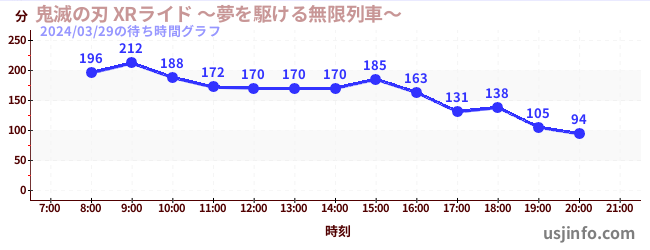 • 鬼滅の刃 XRライド$B$N(B2024年03月29日の待ち時間