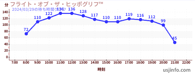 • フライト・オブ・ザ・ヒッポグリフ™$B$N(B2024年03月29日の待ち時間