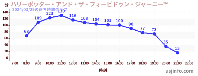 • ハリーポッター・アンド・ザ・フォービドゥン・ジャーニー™$B$N(B2024年03月29日の待ち時間