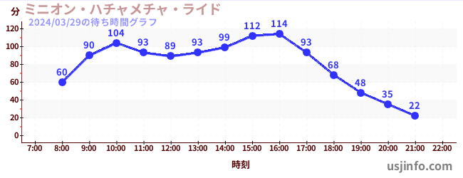 • ミニオン・ハチャメチャ・ライド$B$N(B2024年03月29日の待ち時間