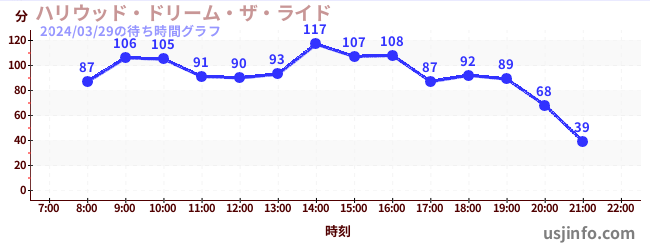 • ハリウッド・ドリーム・ザ・ライド$B$N(B2024年03月29日の待ち時間