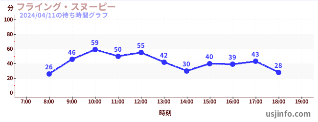 • フライング・スヌーピー$B$N(B2024年04月11日の待ち時間