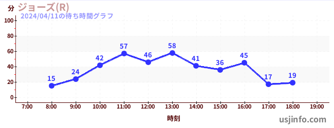 • ジョーズ(R)$B$N(B2024年04月11日の待ち時間