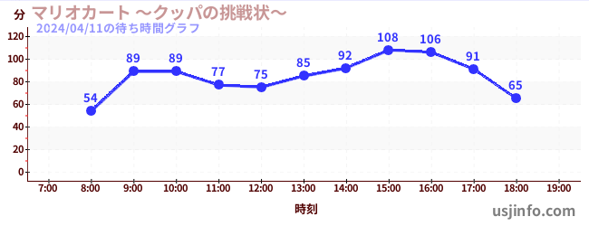 • マリオカート ~クッパの挑戦状~$B$N(B2024年04月11日の待ち時間