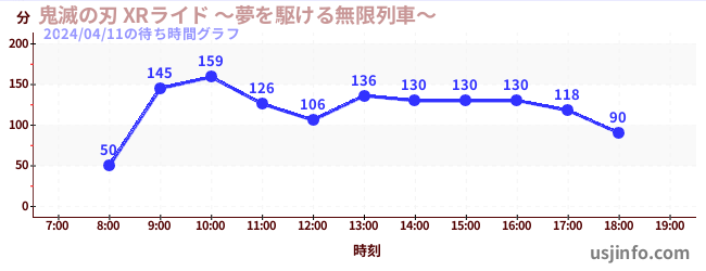 • 鬼滅の刃 XRライド$B$N(B2024年04月11日の待ち時間