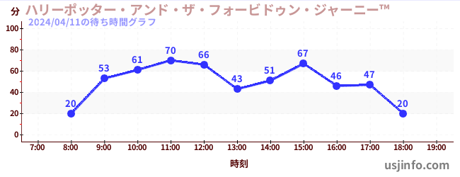 • ハリーポッター・アンド・ザ・フォービドゥン・ジャーニー™$B$N(B2024年04月11日の待ち時間