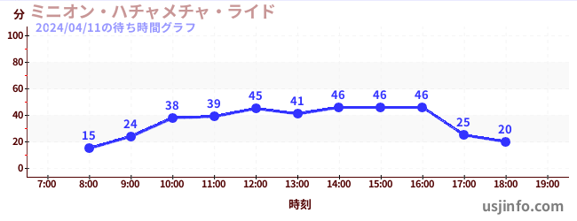 • ミニオン・ハチャメチャ・ライド$B$N(B2024年04月11日の待ち時間