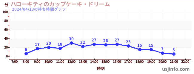 • ハローキティのカップケーキ・ドリーム$B$N(B2024年04月13日の待ち時間