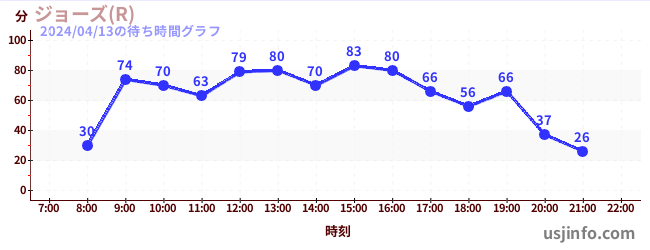 • ジョーズ(R)$B$N(B2024年04月13日の待ち時間
