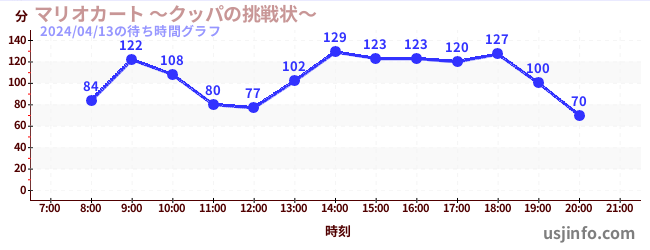 • マリオカート ~クッパの挑戦状~$B$N(B2024年04月13日の待ち時間
