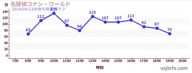 • 名探偵コナン・ワールド$B$N(B2024年04月13日の待ち時間