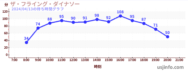 • ザ・フライング・ダイナソー$B$N(B2024年04月13日の待ち時間