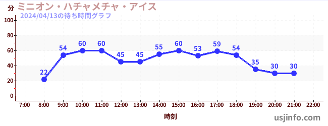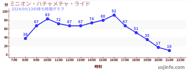 • ミニオン・ハチャメチャ・ライド$B$N(B2024年04月13日の待ち時間