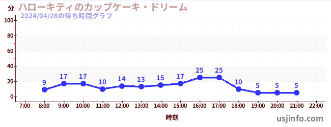 • ハローキティのカップケーキ・ドリーム$B$N(B2024年04月28日の待ち時間