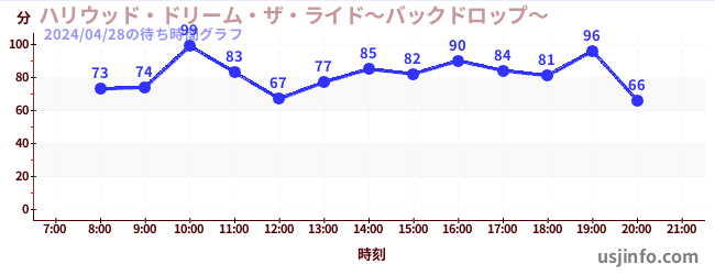 • ハリウッド・ドリーム・ザ・ライド〜バックドロップ〜$B$N(B2024年04月28日の待ち時間