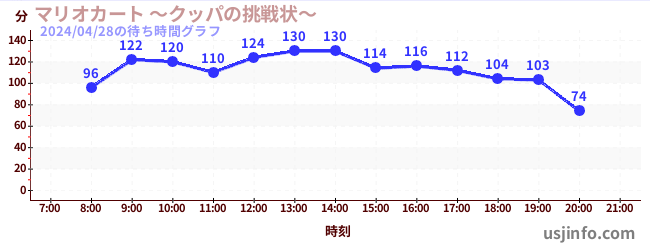 • マリオカート ~クッパの挑戦状~$B$N(B2024年04月28日の待ち時間