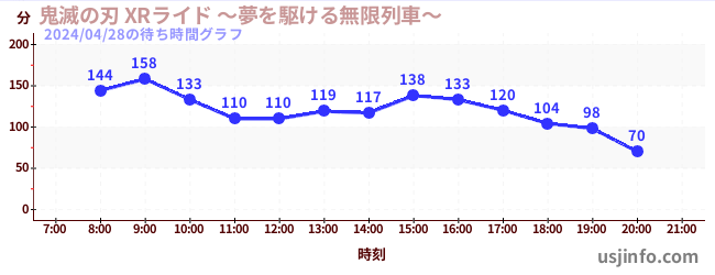 • 鬼滅の刃 XRライド$B$N(B2024年04月28日の待ち時間