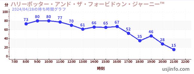 • ハリーポッター・アンド・ザ・フォービドゥン・ジャーニー™$B$N(B2024年04月28日の待ち時間