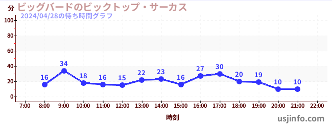 • ビッグバードのビックトップ・サーカス$B$N(B2024年04月28日の待ち時間