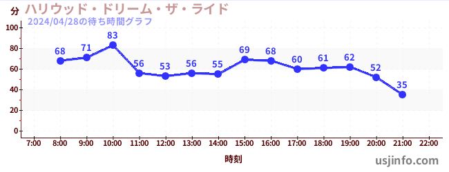 • ハリウッド・ドリーム・ザ・ライド$B$N(B2024年04月28日の待ち時間