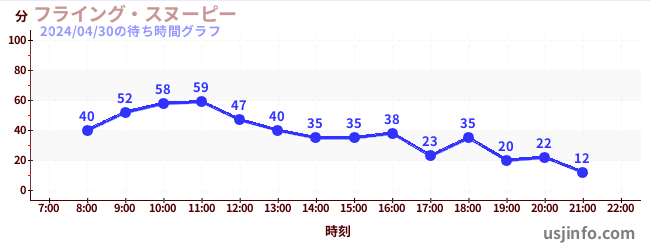 • フライング・スヌーピー$B$N(B2024年04月30日の待ち時間