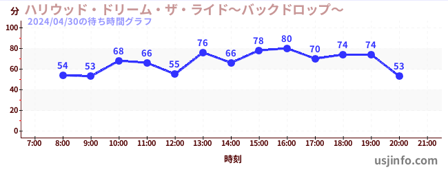 • ハリウッド・ドリーム・ザ・ライド〜バックドロップ〜$B$N(B2024年04月30日の待ち時間