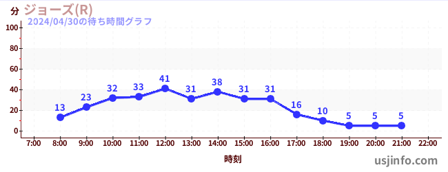 • ジョーズ(R)$B$N(B2024年04月30日の待ち時間