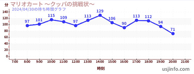• マリオカート ~クッパの挑戦状~$B$N(B2024年04月30日の待ち時間