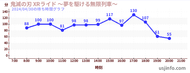 • 鬼滅の刃 XRライド$B$N(B2024年04月30日の待ち時間