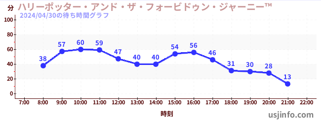 • ハリーポッター・アンド・ザ・フォービドゥン・ジャーニー™$B$N(B2024年04月30日の待ち時間