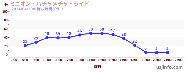 • ミニオン・ハチャメチャ・ライド$B$N(B2024年04月30日の待ち時間