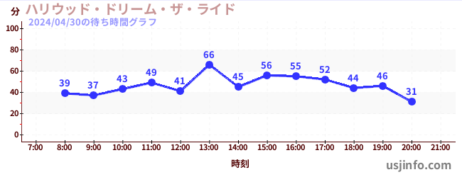 • ハリウッド・ドリーム・ザ・ライド$B$N(B2024年04月30日の待ち時間