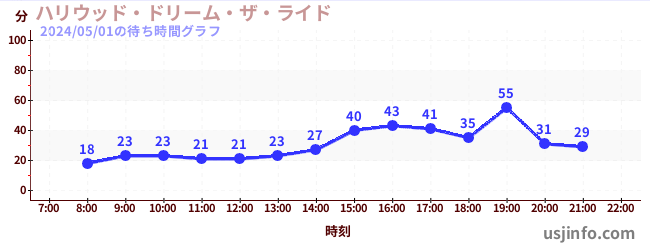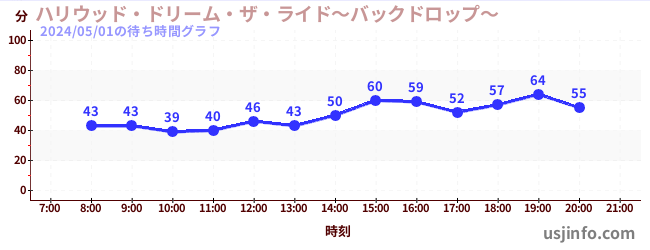 • ハリウッド・ドリーム・ザ・ライド〜バックドロップ〜$B$N(B2024年05月01日の待ち時間