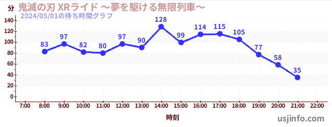 • 鬼滅の刃 XRライド$B$N(B2024年05月01日の待ち時間