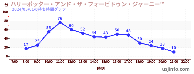 • ハリーポッター・アンド・ザ・フォービドゥン・ジャーニー™$B$N(B2024年05月01日の待ち時間