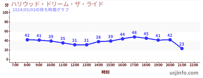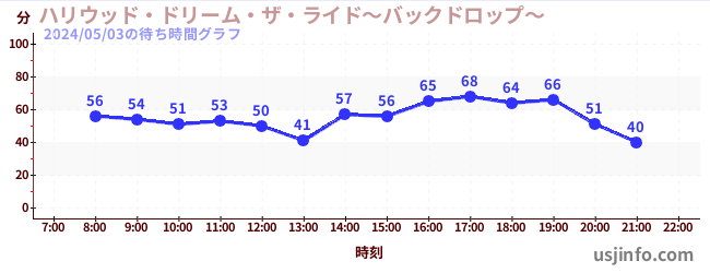 • ハリウッド・ドリーム・ザ・ライド〜バックドロップ〜$B$N(B2024年05月03日の待ち時間