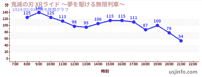 • 鬼滅の刃 XRライド$B$N(B2024年05月03日の待ち時間