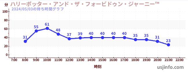 • ハリーポッター・アンド・ザ・フォービドゥン・ジャーニー™$B$N(B2024年05月03日の待ち時間
