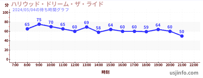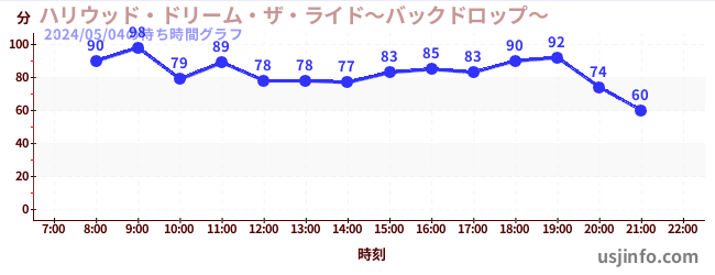 • ハリウッド・ドリーム・ザ・ライド〜バックドロップ〜$B$N(B2024年05月04日の待ち時間