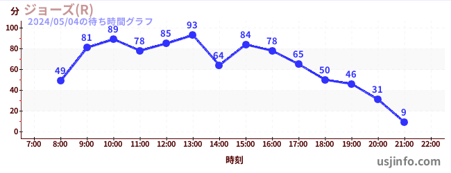• ジョーズ(R)$B$N(B2024年05月04日の待ち時間